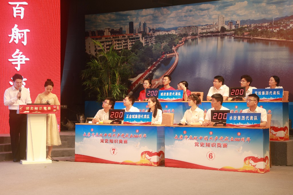 7月27日下午,永康市國(guó)資系統(tǒng)慶祝建黨100周年黨史知識(shí)競(jìng)賽在廣電演播大廳緊張熱烈舉行。共有來(lái)自國(guó)投控股、城投集團(tuán)、交投集團(tuán)、水投集團(tuán)、文旅集團(tuán)、金匯集團(tuán)、五金城集團(tuán)、四方集團(tuán)、五金資產(chǎn)公司組成的9支代表隊(duì)27名選手參加了本次比賽。